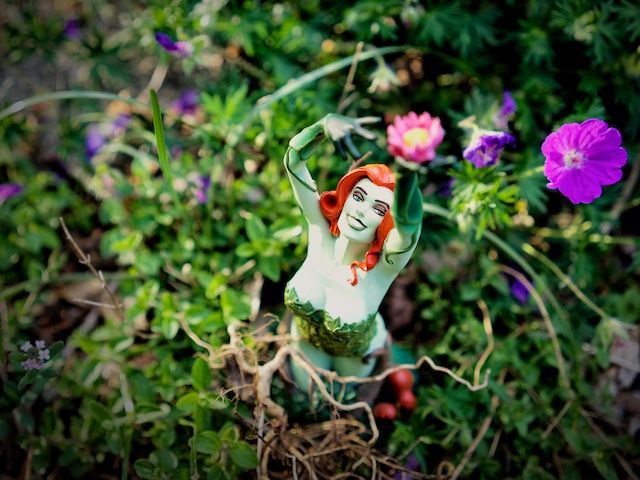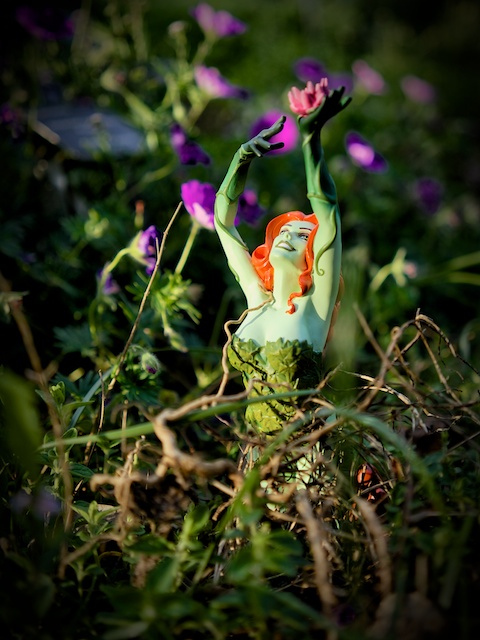 I really did not know how tricky this was going to be when I started, given the size of the small bust designed by comic book artist Amanda Conner. I wanted to place Ivy in her natural habitat and sought out flora that complimented the color scheme. This meant lying down on the sidewalk along the gardens, figuring out the best light and angle, while also trying to find a slight slope to get the “from below” angle. This proved the most elusive perspective, given the fact that Ivy is looking up while I wanted to focus on the eyes. I also had limited myself to using the 35mm prime lens that I had at the time, which meant that in addition to lying on the ground, I had to get pretty close. I wasn’t as happy with this image, because the angle didn’t feature the eyes or face as well as it should. I do like, however, how the lines of the background landscape look from this angle, something that would later influence my landscape photography. I probably also looked more than a bit strange as I was arranging the dead roots to camouflage her base. I think at one point, a mother came by as I was lying on the ground and said to her daughters, “Awww, look, he’s taking pictures of a fairy.” I don’t think Pamela Isley would like that one bit.