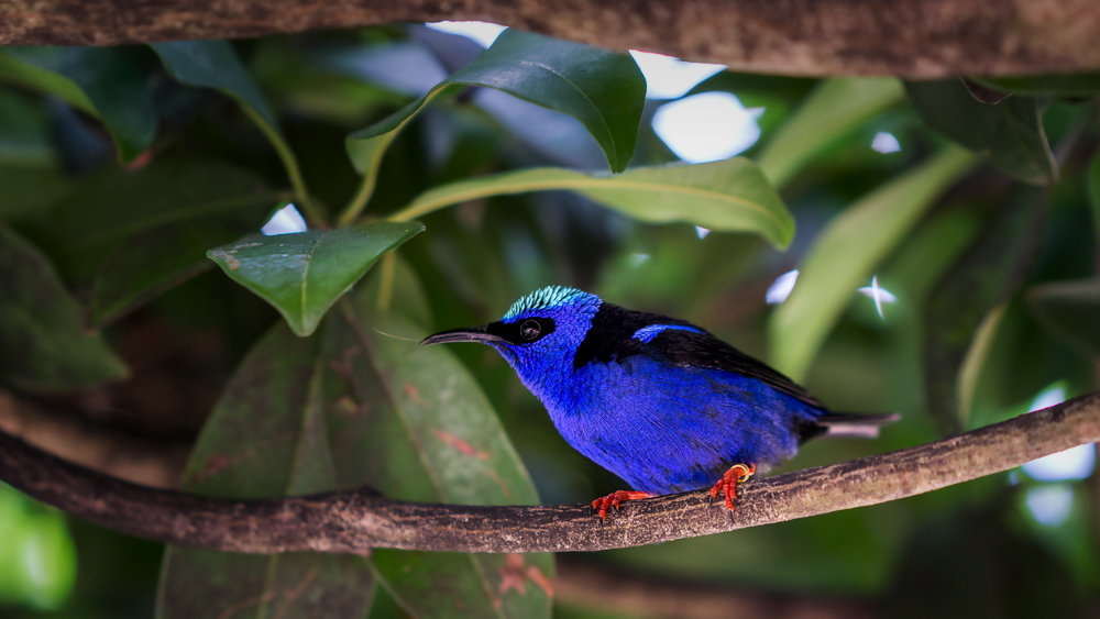 A cute little blue male honey creeper I stalked while in Grand Cayman.